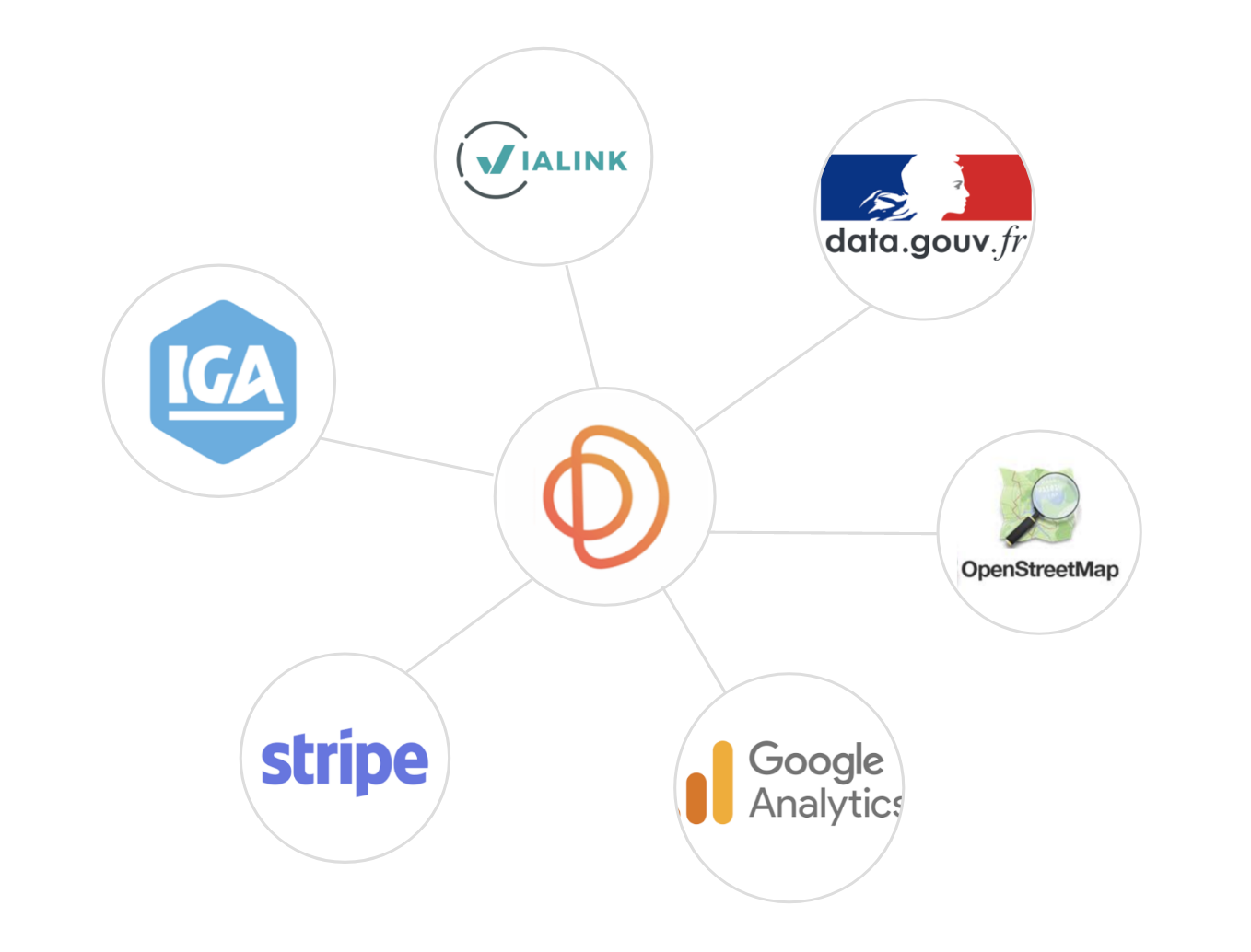Plusieurs API déjà connectées pour de l’enrichissement de données, géolocalisation, signature électronique, paiement en ligne, authentification de documents…
